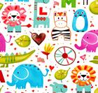 ✔De eerste kleuruitvoering combineert diepblauw, frisgroen, warm geel en oranje op een zachte roomwitte achtergrond met een licht geweven textuur, waardoor de dieren helder afsteken maar het geheel toch rustig blijft ogen.