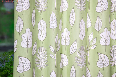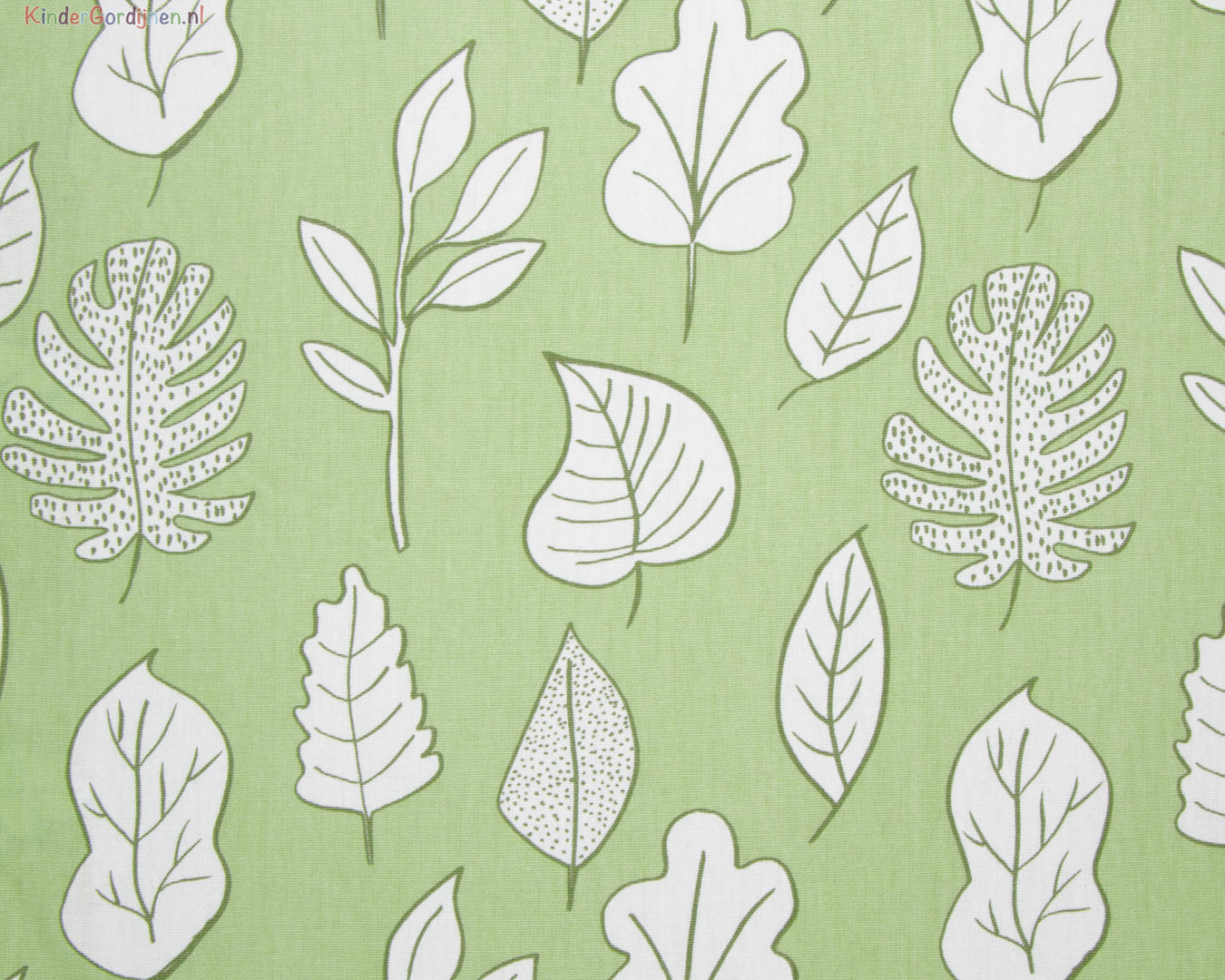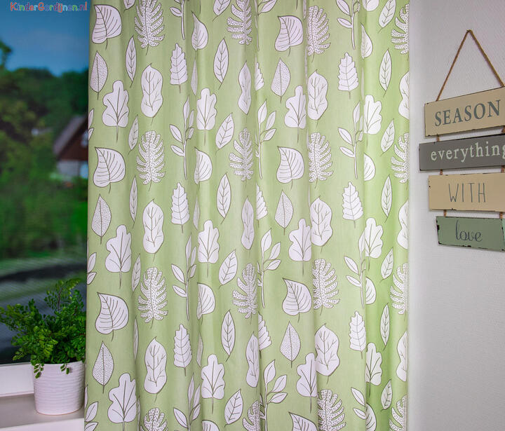 Rustig gordijn voor de kinderkamer met een print van bladeren.