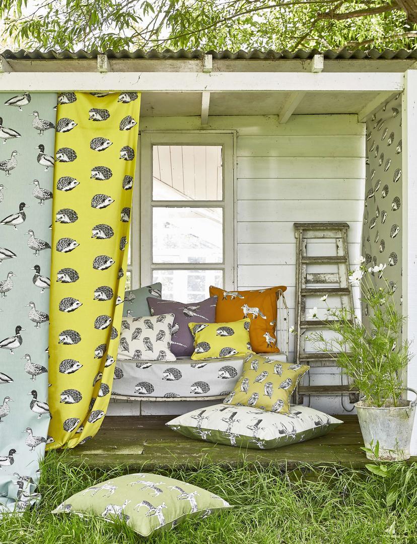 De Combi Animal, deze collectie bestaat uit een prachtige oranje en grijze gordijnstof met schattige vossen die speels door de stof lijken te dartelen. Daarnaast hebben we een kastanje kleurige stof met prachtige hertjes die elegant het landschap sieren. En laten we de oker gele stof niet vergeten, versierd met adembenemende egeltjes die je hart doen smelten.