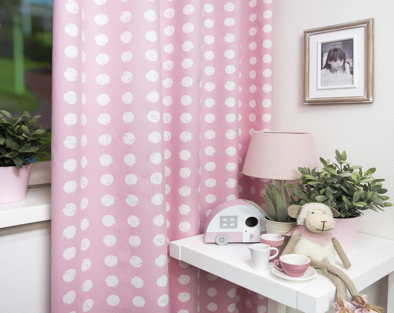 Het stippengordijn Zero is een hoogwaardige gordijnstof verkrijgbaar in 8 kleuren. Dit gordijn is gemaakt van een zware kwaliteit stof, waardoor het niet alleen een prachtige uitstraling heeft, maar ook duurzaam en stevig is. Wat dit gordijn zo bijzonder maakt, zijn de 3 cm grote witte stippen die als gestempeld lijken op de stof. Deze stippen zijn perfect geplaatst, netjes en eenvoudig in een rij op de stof. Het resultaat is een speels en trendy patroon dat een moderne touch geeft aan de kinderkamer.