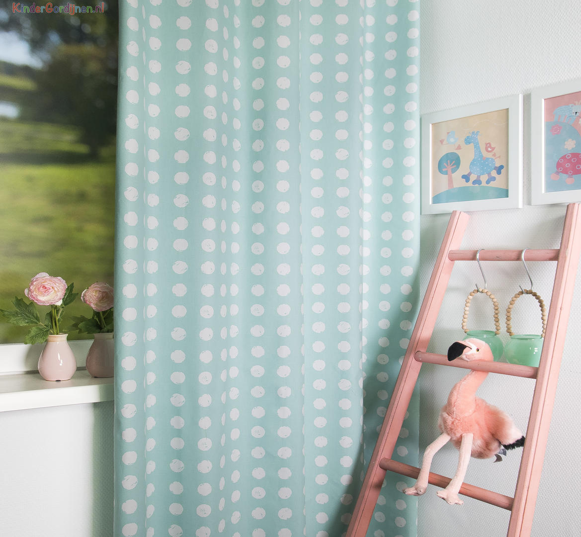 Het stippengordijn Zero is een hoogwaardige gordijnstof verkrijgbaar in 8 kleuren. Dit gordijn is gemaakt van een zware kwaliteit stof, waardoor het niet alleen een prachtige uitstraling heeft, maar ook duurzaam en stevig is. Wat dit gordijn zo bijzonder maakt, zijn de 3 cm grote witte stippen die als gestempeld lijken op de stof. Deze stippen zijn perfect geplaatst, netjes en eenvoudig in een rij op de stof. Het resultaat is een speels en trendy patroon dat een moderne touch geeft aan de kinderkamer.