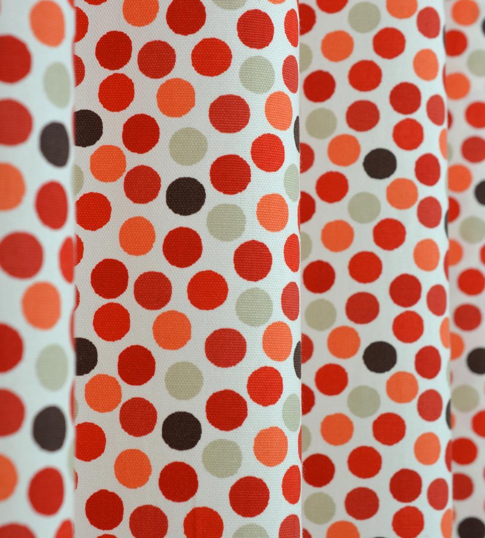 Stoere stippenstof! Dit gordijn past in iedere kinderkamer: stippen zijn speels, vrolijk & sprankelend. Het patroon is gedrukt op mooie dicht geweven, matte katoen. De stof is leverbaar in 3 verschillende kleurpaletten, daardoor geschikt voor zowel de meisjes- als jongenskamer. De kaneelkleurige variant is natuurlijk heel leuk in een naturel style slaapkamer met riet, rotan, zeegras en sloophout. Zie je het plaatje al voor je? Voor verduistering even laten voeren.