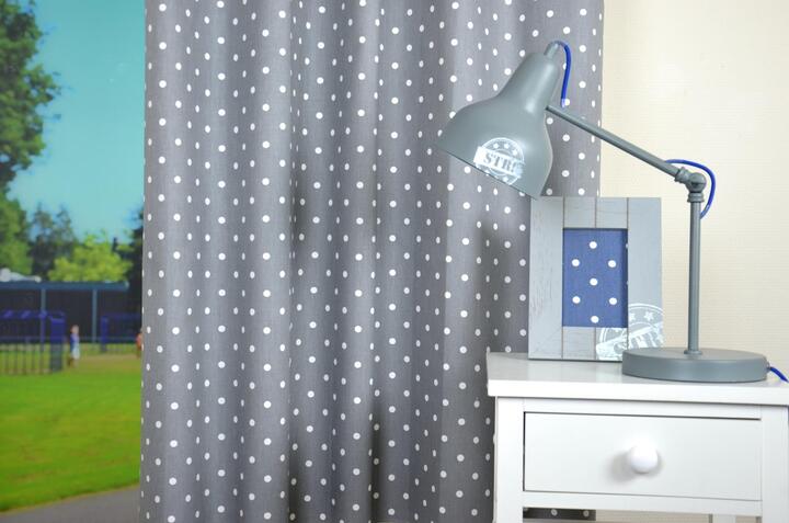 Een STIP blijft altijd HIP! Een stippelgordijn kan zowel voor de kinder- als babykamer. Ideaal zo’n rustig patroontje wat uitstekend met andere vormen & thema’s combineert. Je kan met behang of beddengoed alle kanten op. De stip is 1 cm in doorsnede en het gordijn leverbaar in maar liefs 15 kleuren. De kleuren zijn op de voorzijde aangebracht, de achterzijde is neutraal wit. De matte stof is mooi dicht geweven, met een lichte structuur wat een vlotte uitstraling geeft. Overduidelijk een zichtbaar goede kwaliteit. Het gestipte gordijn kan verduisterend gevoerd worden, wanneer je graag donker slaapt. Voor welke kleur ga jij?