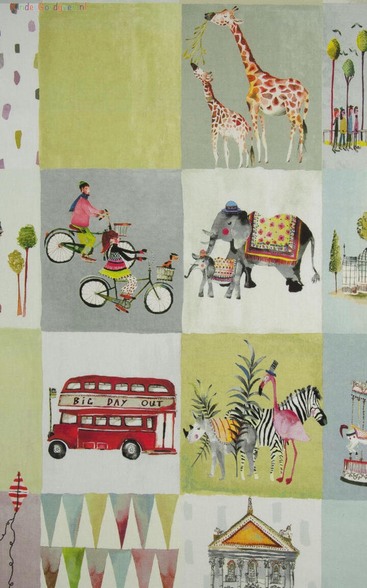 Een plaatje dit kindergordijn! De kleuropbouw is heel eigentijds, maar kijk eens goed naar de fraaie schilderachtige afbeeldingen. Het sfeertje ademt een stukje fijne nostalgie. De stof is dicht geweven en mat en aan de voorzijde bedrukt met deze aquarelachtig geschilderde vlakken. Door deze rustgevende indeling, is dit gordijn uitstekend geschikt voor grotere raamoppervlaktes. Goed te combineren met lichte wanden, maar ook een zachte, afgezwakte tint uit het gordijn maakt het geheel perfect in stijl! Let’s go together for a nice day out!