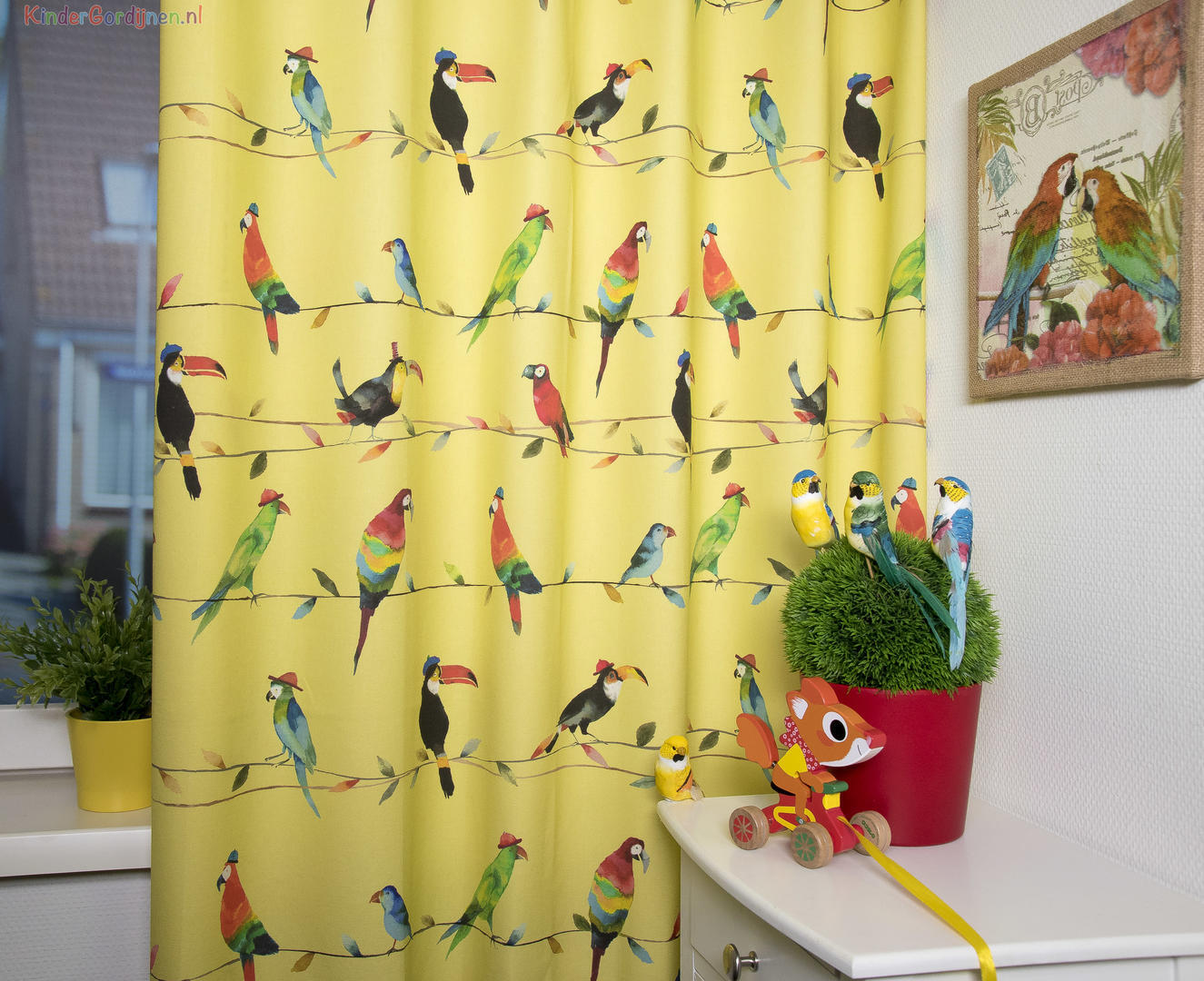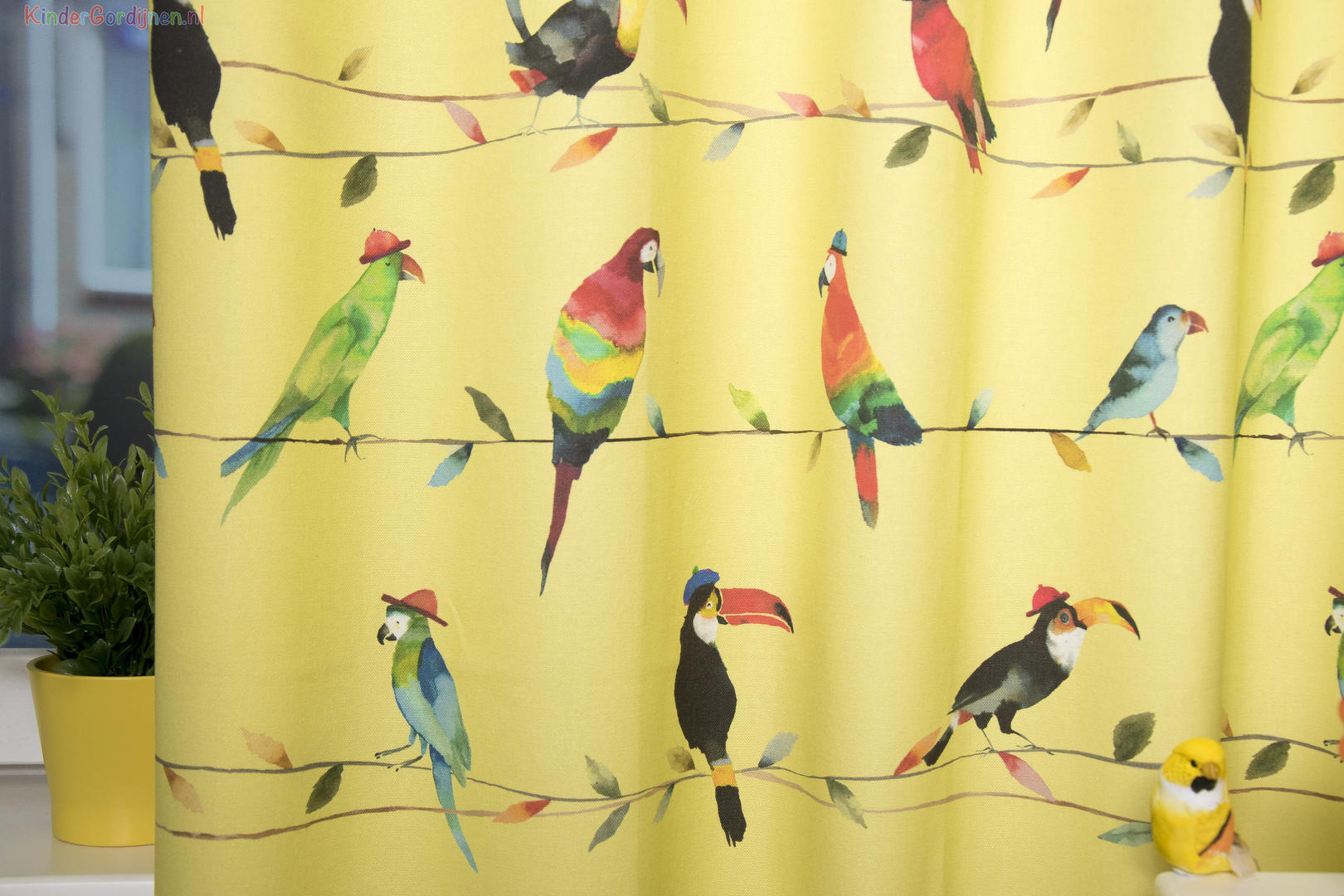 Mooie en unieke gordijnstoffen perfect op patroon geconfectioneerd, dat is wat we belangrijk vinden. Dat geldt zeker ook voor deze gordijnstof met de naam Toucan Talk, een unieke gordijnstof met een dessin. De stof is gemaakt van de beste materialen waardoor het gordijn mooi in de plooi valt. Het aantal te gebruiken banen gordijnstof van 137 cm breed wordt door ons vakkundig aan elkaar geconfectioneerd zodat het patroon van 64 cm mooi doorloopt. Laat voor een aangename isolatie en extra verduistering de gordijnen voeren: een verschil van dag en nacht!