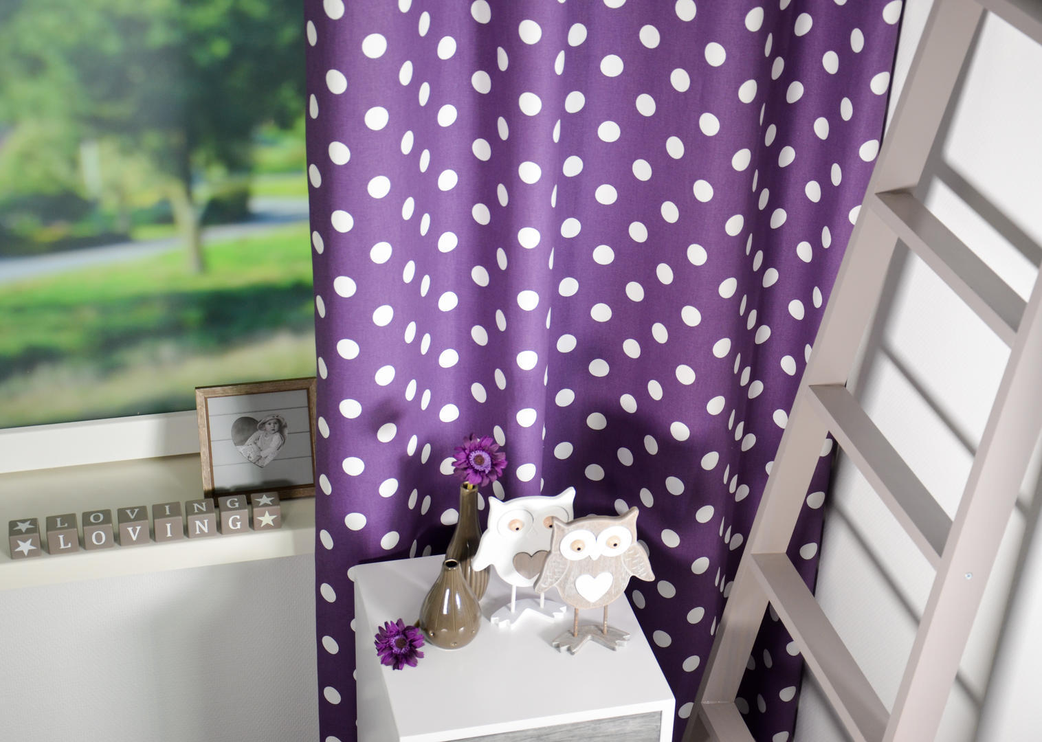 Het purple polka dot kindergordijn is een trendy en stijlvol kindergordijn. Met zijn eigentijdse, grotere stippen op een aubergine paarse achtergrond, geeft dit gordijn een speelse uitstraling die zowel rustgevend als stijlvol is. De hoogwaardige 100% katoenen stof zorgt voor comfort en duurzaamheid, terwijl de mogelijkheid tot het toevoegen van een verduisterende voering extra veelzijdigheid biedt. Het gestipte patroon leent zich uitstekend voor combinaties met andere motieven, zoals zomerse bloemenprints of zelfs zilveren ornamenten behang. Met een stippatroon van 3 cm in doorsnede is dit gordijn een opvallende keuze die gemakkelijk te combineren is. Wil je de stof graag eerst van tevoren zien en voelen? Dat kan! Je kunt eenvoudig knipstaaltjes bestellen om de stof zelf te zien en te voelen voordat je bestelt. Kies voor het purple polka dot kindergordijn voor een levendige toevoeging aan elke kinderkamer en geniet van de kwaliteit en veelzijdigheid die het te bieden heeft. Als je vragen hebt, sta ik altijd klaar om te helpen!