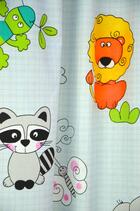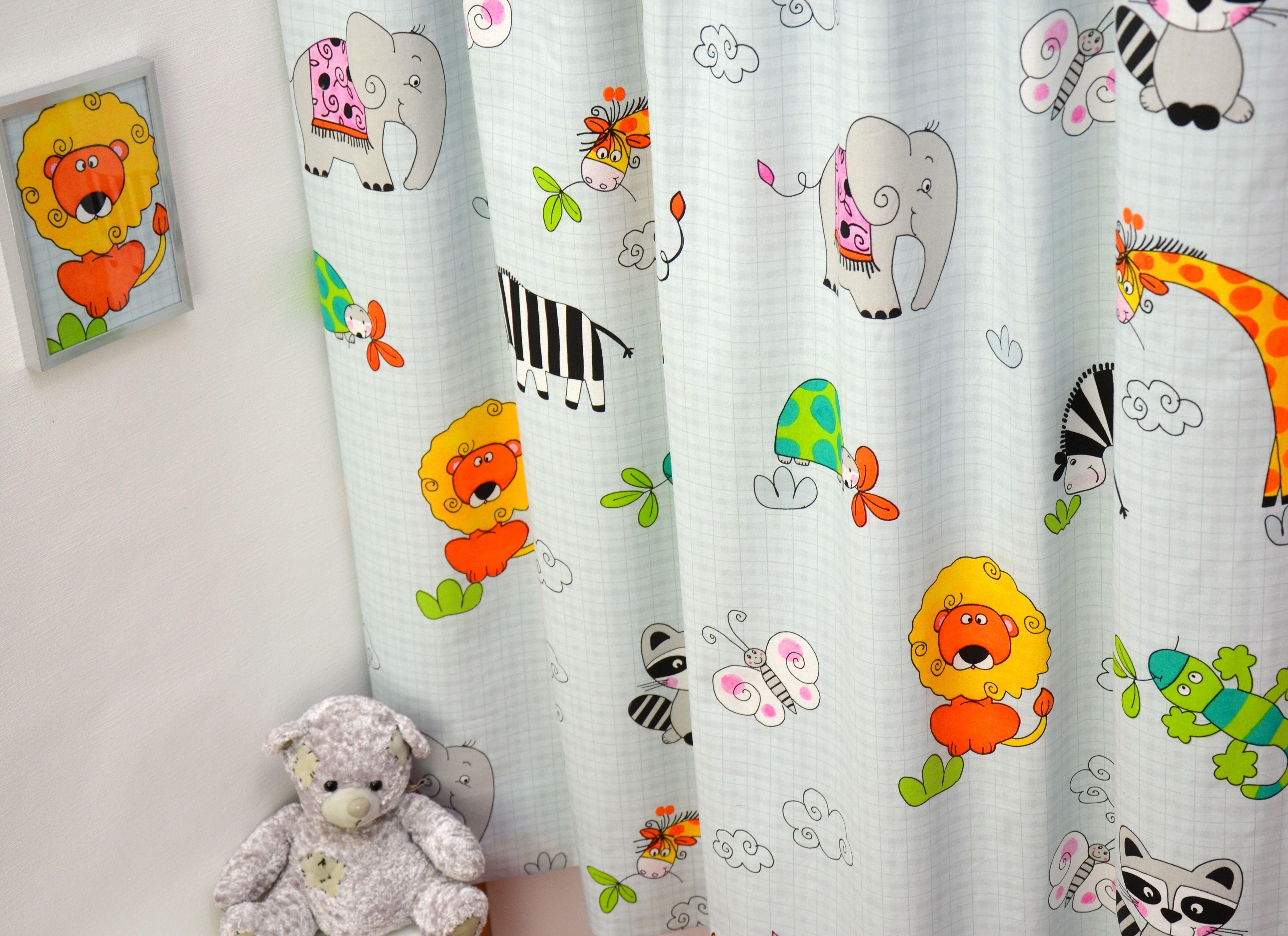 Maak een dierentuin van de kinderkamer! Met dit gordijn kan uw zoontje of dochtertje eindeloos spelen met giraffes, leeuwen, wasberen, olifanten en zebra’s om zich heen.