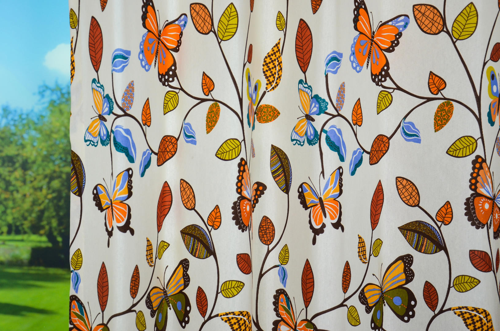 Vrolijke vlindergordijnen voor jouw slaapkamerraam! De afbeeldingen zijn gedrukt op sportieve, ietwat geribde stof. De ondergrondkleur is warm roomwit en het gordijn leverbaar in 2 verschillende kleurpaletten. Frisse zomerse tinten en de ander een wat ‘volwassener’ kleurgebruik. Ook goed te combineren met gebloemd behang. Welke past het beste bij jouw kamer? De stof is kamerhoog, dus voor hetzelfde geld mooi tot de grond geconfectioneerd! Voor een verduisterend effect graag laten voeren.