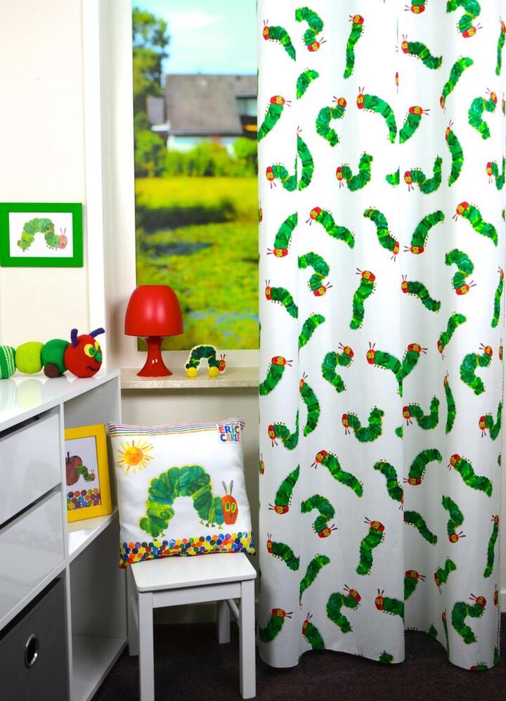 Kindergordijnen.nl levert nu ook prachtige kindergordijnen met Rupsje Nooitgenoeg! De kleine rups heeft altijd maar honger en verandert uiteindelijk in een prachtige vlinder. Zijn uw (klein)kinderen gek op dit verhaal? Verras ze dan met dit vrolijke gordijn voor de kinderkamer!