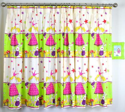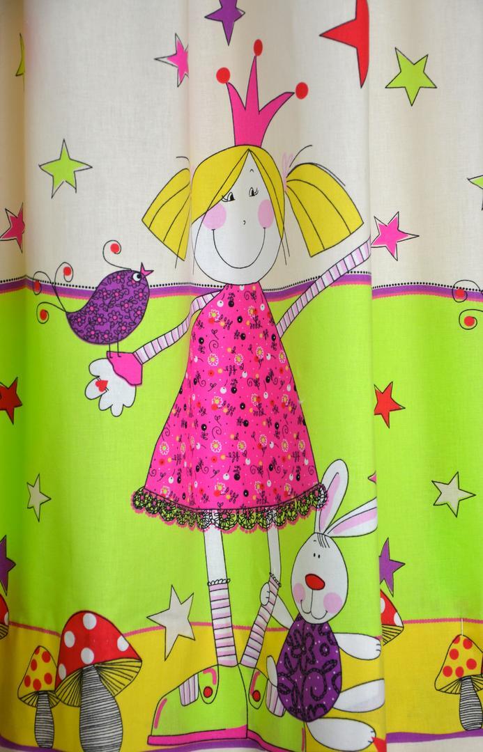 Van dit vrolijke prinsesje wordt ieder kind blij. Dit typische meidengordijn creëert een knusse sfeer in de kinderkamer van uw dochter. De katoenen gordijnstof is los te bestellen of wordt gratis verwerkt tot een kant-en-klaar gordijn.