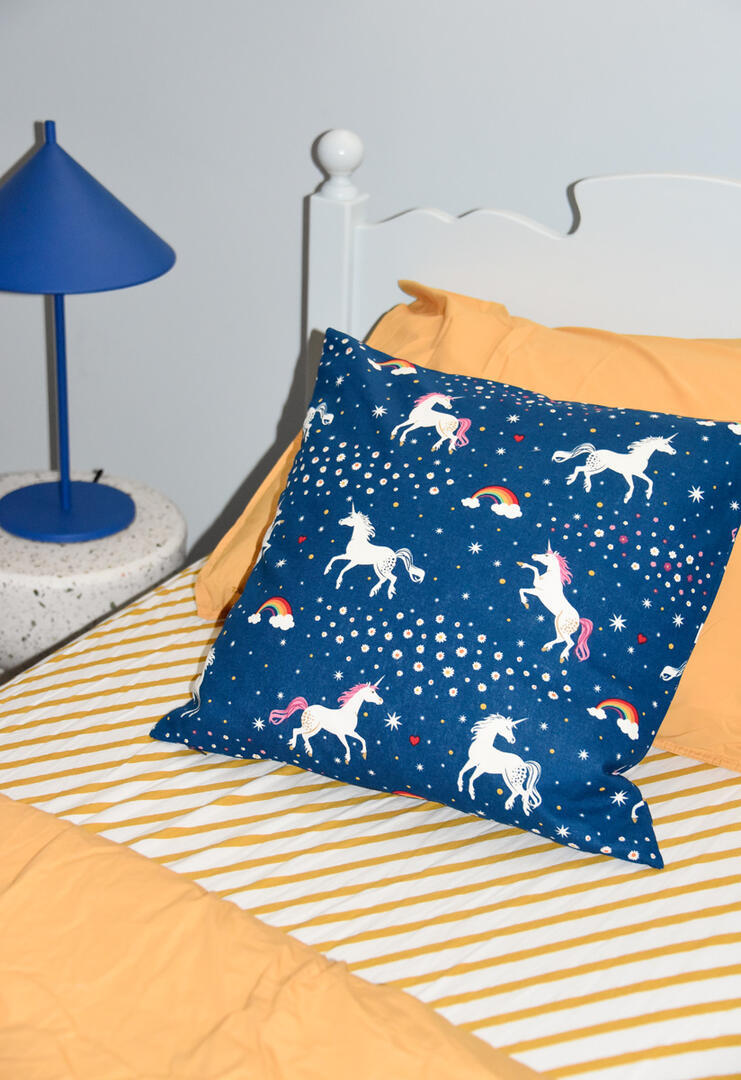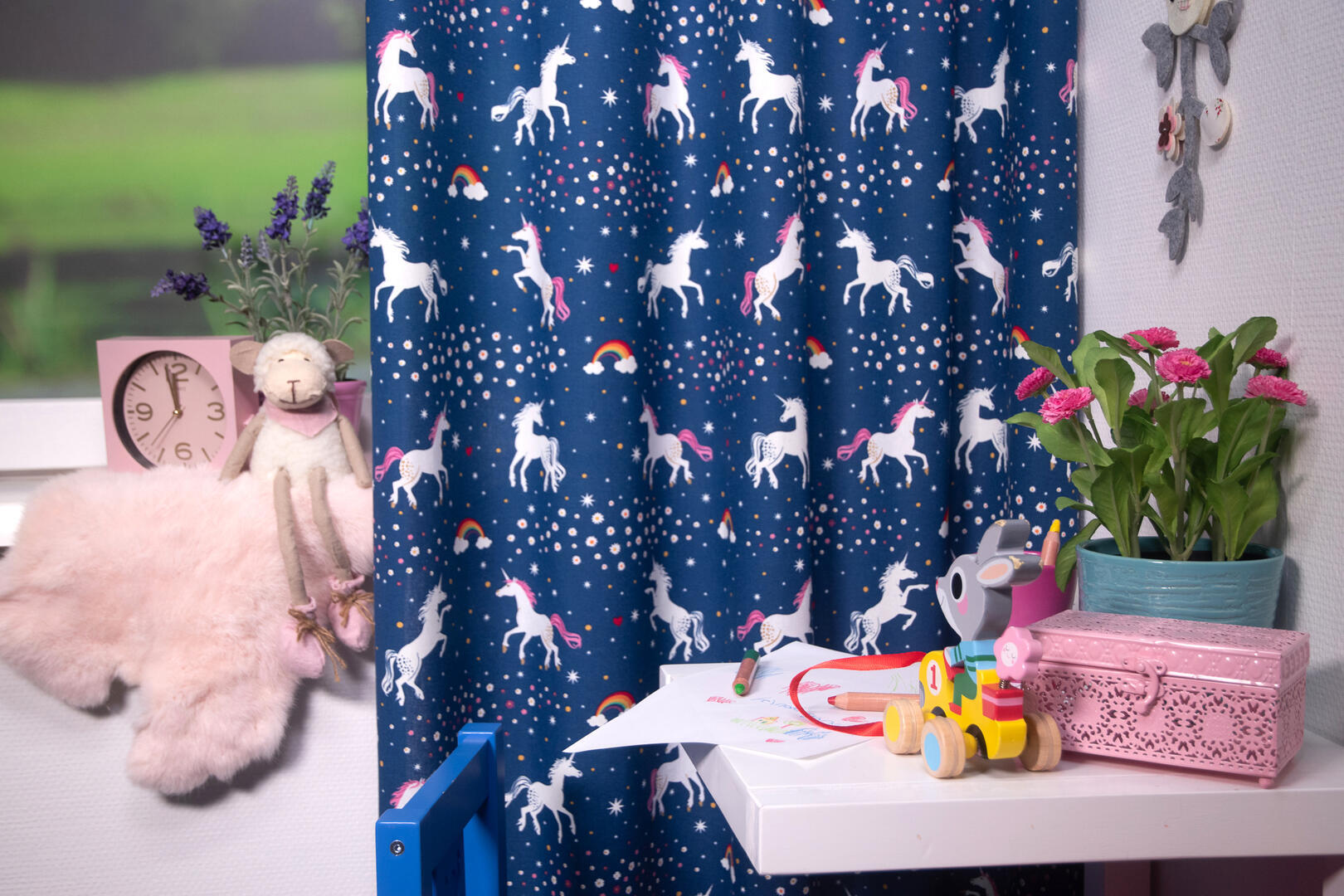 Niet alleen heeft het Starry Unicorn gordijn een betoverende print, maar het is ook gemaakt van dikke katoenen gordijnstof. Dit betekent dat het niet alleen mooi is om naar te kijken, maar ook duurzaam en van hoge kwaliteit is. Het gordijn voelt heerlijk aan en zorgt voor een gezellige en warme sfeer in de kamer.
