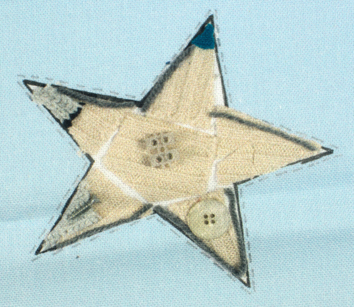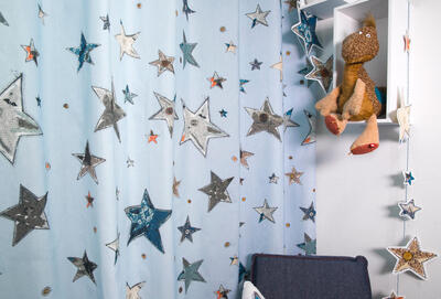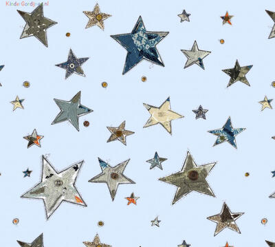 Een súper speciaal sterrengordijn voor de kinderkamer, ontworpen door Hanneke de Jager. Deze beeldend kunstenares is schrijver en tevens illustrator van een aantal bijzonder leuke kinderboeken. Zij omschrijft haar stijl als: fris, keurrijk, levendig, speels en zonnig. Door gebruik van verschillende materialen zoals stofjes van de markt, knopen en gebreide truien, geeft zij haar illustraties iets unieks. In het patroon zie je namelijk de weergave van die leuke details van de verschillende texturen.