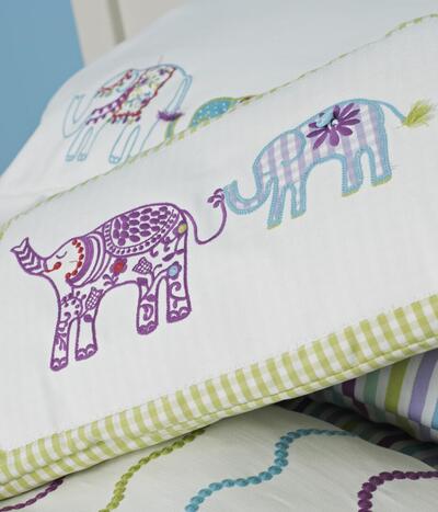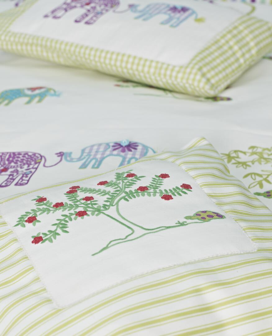 Tara – geborduurd patchwork gordijn met olifanten