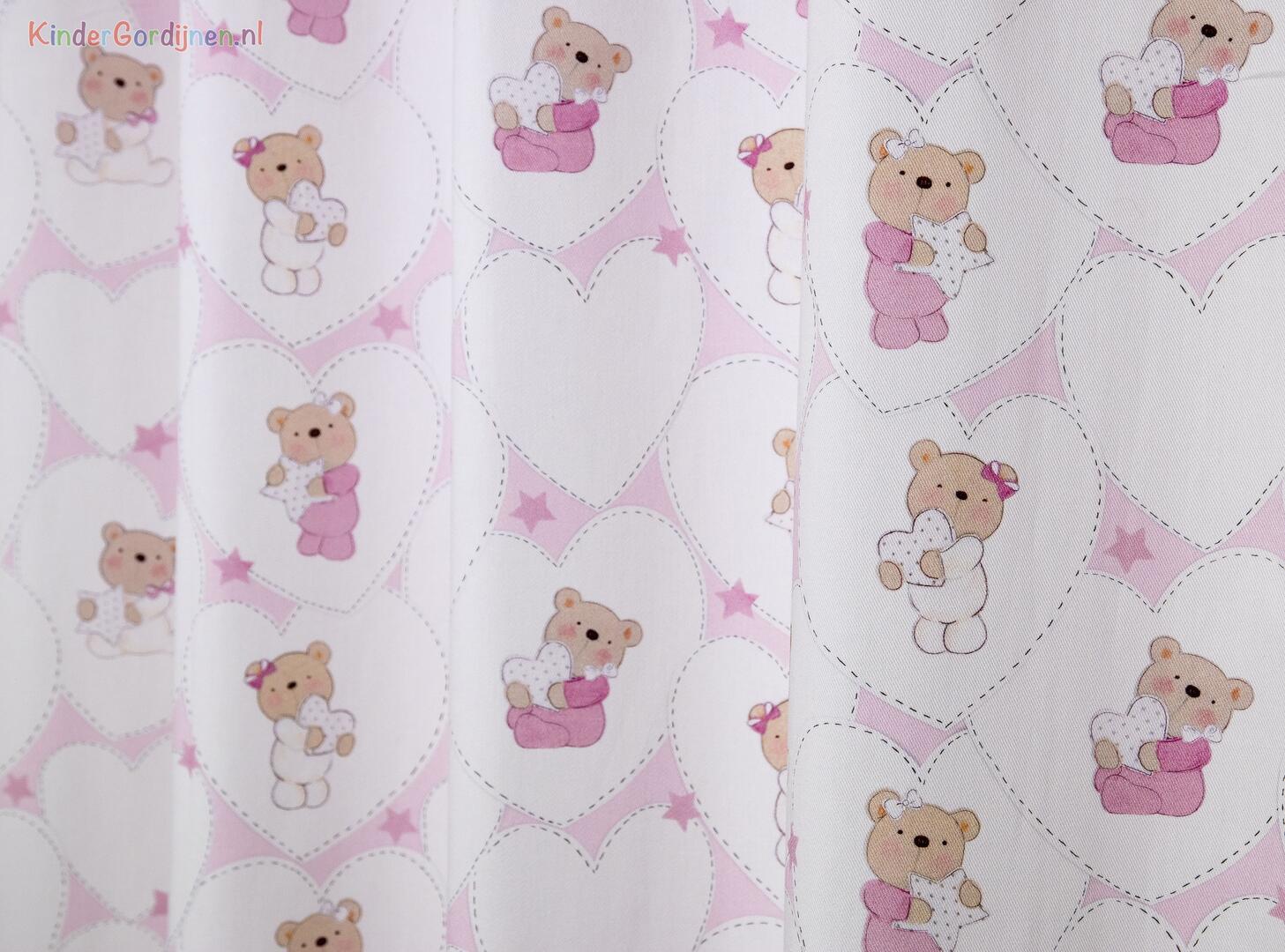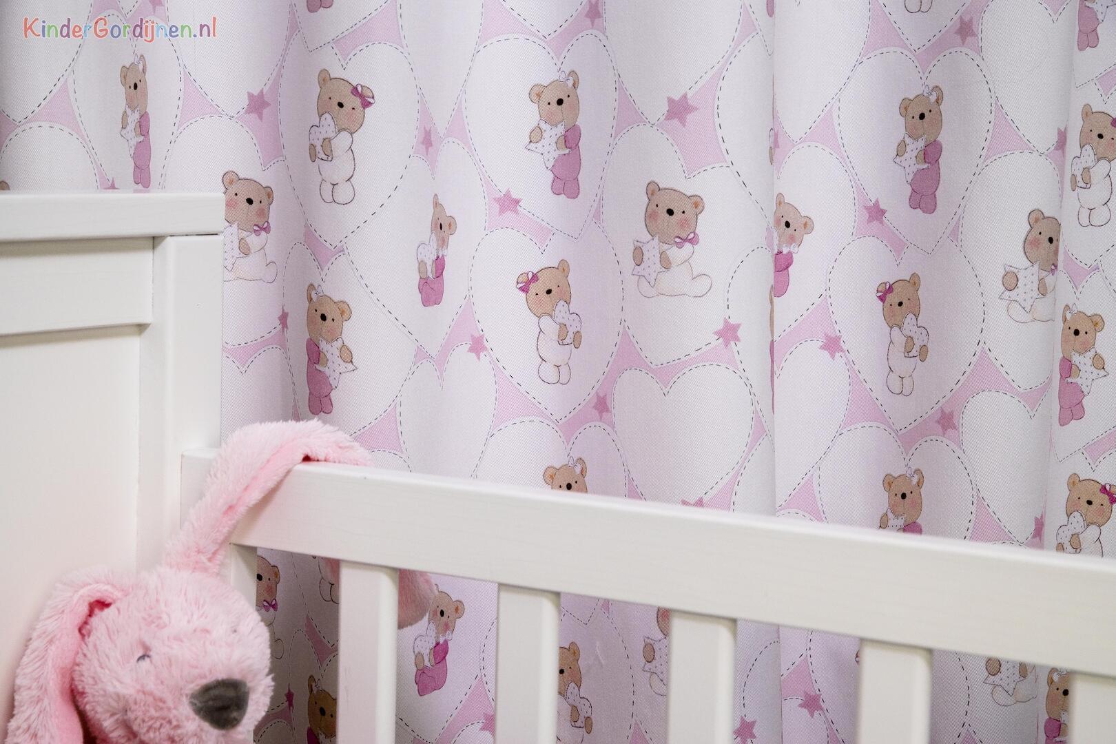 Het babygordijn Teddy Hearts is een schattige toevoeging aan de kinderkamer, met hartjes waarin baby teddybeertjes, elk met een hartje of sterretje in hun pootjes. De stippellijnen omlijnen de enigzins overlappende hartjes op een speelse manier, waardoor ze lijken te zweven als ballonnen. Het Teddy Hearts babygordijndijn is gemaakt van hoogwaardige OEKOTEX-gecertificeerde katoenen stof van 280 cm breed, zodat er weinig tot geen naden in het gordijn komen. Kies uit drie prachtige kleuren: babyblauw, babyroze en zachtgrijs wat perfect is voor als je het geslacht van je baby nog niet weet of als je liever een neutrale uitstraling wilt. Personaliseer het gordijn verder door tijdens het bestelproces de optie "Voering" aan te vinken voor extra isolatie en verduistering.