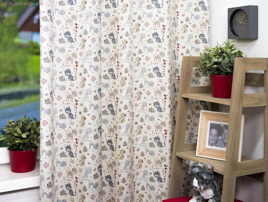 Voor de kleine dierenliefhebber – en wie is dat niet? – zijn er prachtige variaties kindergordijnen met huisdieren. Lief en aaibaar tot een beetje maf, van knalkleuren tot een rustig-zachte sfeer. Honden parmantig in een rij of levensechte die je met trouwe hondenogen aankijken en waken over uw kind. De poezen verstrengeld met hartjes zijn onweerstaanbaar. Of misschien die vrolijke snorrenbeesten op een patchworkmotief? Daarnaast zijn er kindergordijnen met konijnen, muisjes en vogels.