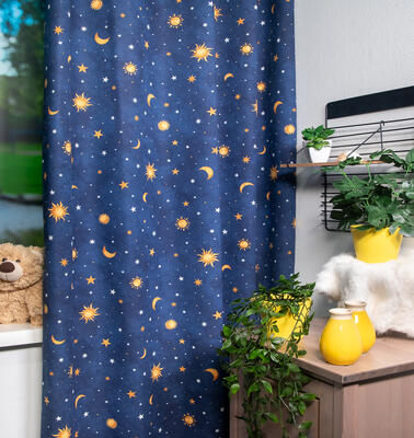 Kijk voor accenten die passen bij het gordijnen met sterren ook eens naar de mogelijkheden met meubels en accessoires voor de inrichting van de kinderkamer. Laat voor een aangename verduistering van de kamer de stof voeren: een verschil van dag en nacht.