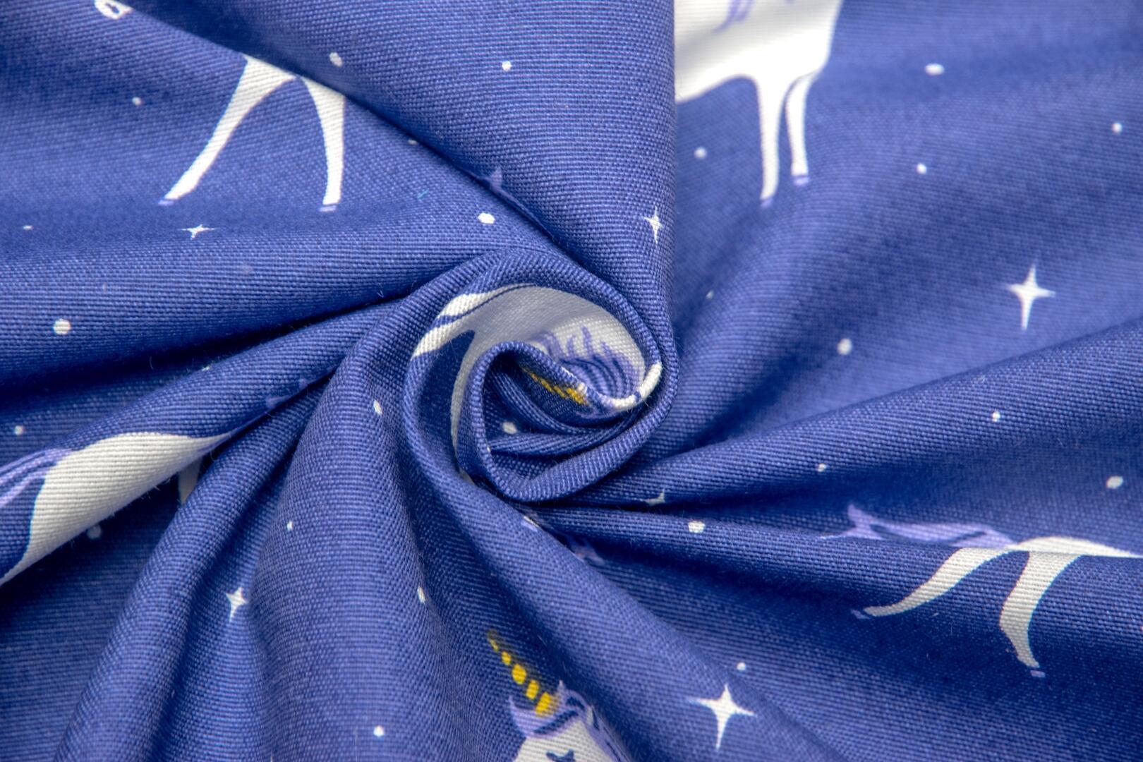 Deze gordijnstof met de naam Unicorn SkyNight is gemaakt van de beste materialen waardoor het gordijn mooi in de plooi valt.