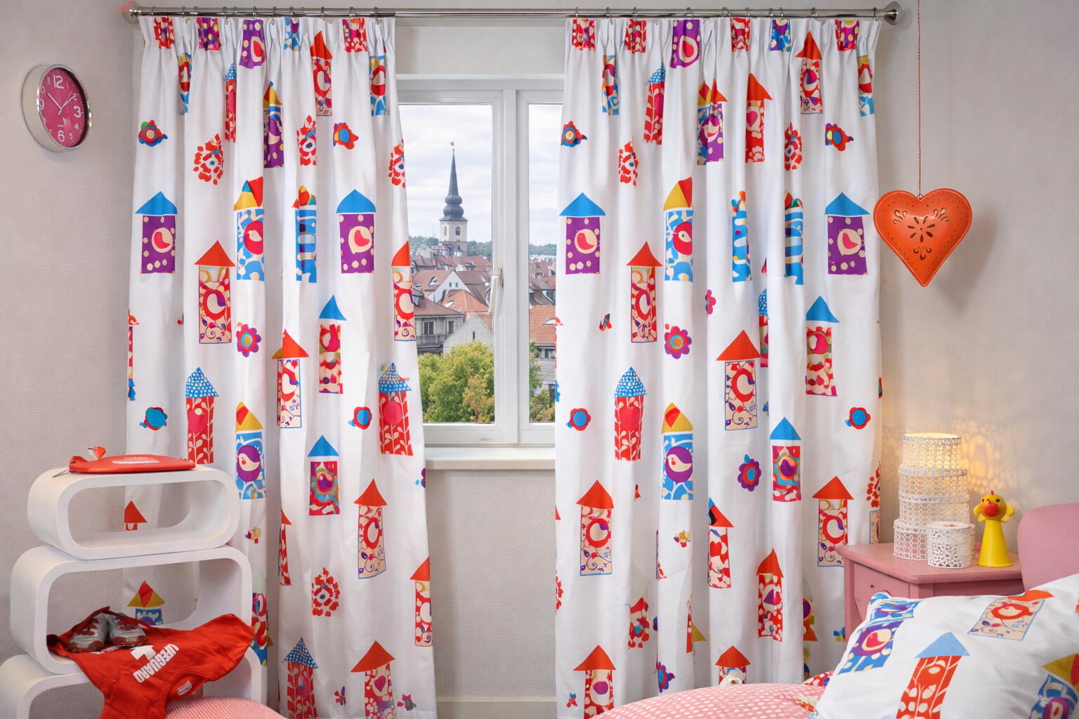 De print is vrolijk zonder kinderachtig te worden, waardoor het gordijn jarenlang mooi blijft – van peuterkamer tot tienerkamer.
