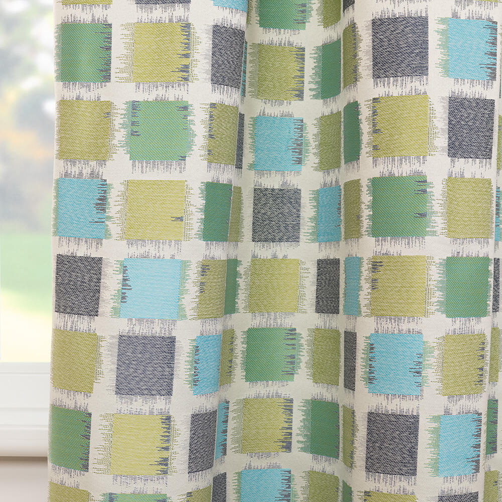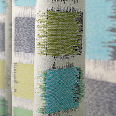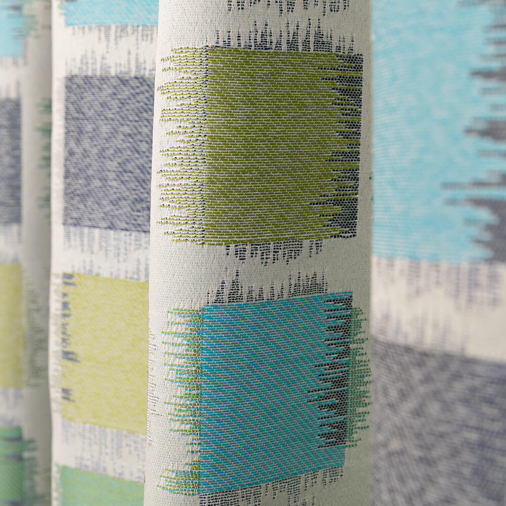 Een kindergordijn met vierkante vormen in frisse en speelse kleuren. De stof is gemaakt van gerecyclede garens en valt nonchalant en royaal. De stof is ook ideaal voor een vouwgordijn en verkrijgbaar in twee kleuren.
