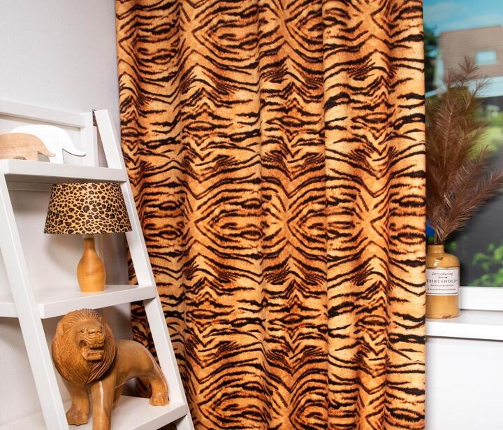 Met trots presenteren wij van KinderGordijnen onze Wildlife gordijnen collectie! Laat je inspireren door de natuur met deze collectie van vijf prachtige dierenprints. Je kunt kiezen uit deze stoere tijgerprint, een stijlvolle zebra print, een elegante giraffe print  en twee verschillende luipaardvachten. Onze gordijnstoffen zijn van ongeëvenaarde kwaliteit, zijdezacht fluweel dat soepel valt en vrij is van kreukels en vouwen. Geniet van het gemak van onze antistatische stoffen, die vuil afweren en langdurige pracht behouden.