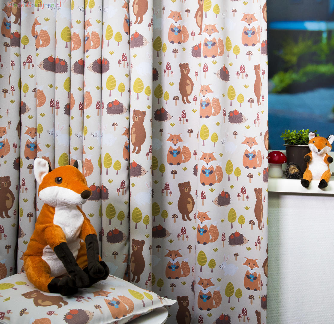 Nostalgisch gordijn én nog dim out ook! Dat betekent dat zonder extra voeren de kamer al aangenaam donker wordt. Ideaal om te zorgen dat je kindje iets langer in dromenland blijft. De ondergrond is een zachte zandkleur, de achterzijde een egaal gebroken wit. De lieflijke honingbeer is 12 cm groot en het witte sprookjeskonijn 6 cm. Houd je van warme sfeer uit vervlogen tijden, dan is dit jouw ideale gordijn!