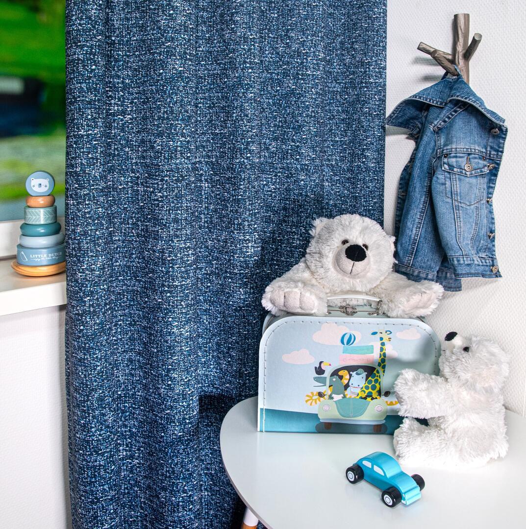 Hoor je dat? Het is tijd om te dromen!  Met ons verduisterende **Yarn kindergordijn** creëer je de ideale omgeving voor een goede nachtrust. Met een speelse weefstructuur en verkrijgbaar in drie gave kleuren – blauw, terracotta en taupegrijs – is het gordijn niet alleen een lust voor het oog, maar ook een echte slaapheld! Wil je de stof eerst zien en voelen? Dat kan! Vraag een knipstaal aan en ontdek de unieke textuur en kleuren, zodat je zeker weet dat je de beste keuze maakt. Mind you, de staaltjes gaan vaak dezelfde dag nog op avontuur naar jouw huis! šŸŽ‰ Heb je vragen? Ik sta altijd klaar om je te helpen. Maak van de slaapkamer een comfortabele plek met Gordijn Yarn en laat die dromen maar komen! šŸŒ™āœØ